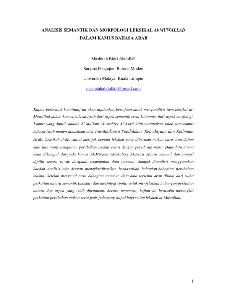 Analisis Semantik Dan Morfologi Leksikal Al Muwallad Dalam Kamus Bahasa Arab Pdf